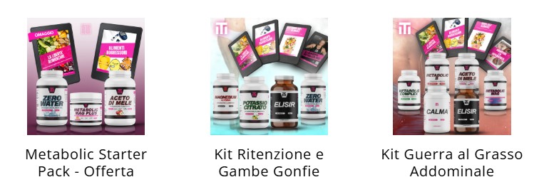 Tra i prodotti più noti trovi il magnesio Metabolic Mag, Metabolic Protein, Omega-3 Alaska, Elisir, Calma, Zero Water, Zero Fat e molti altri.